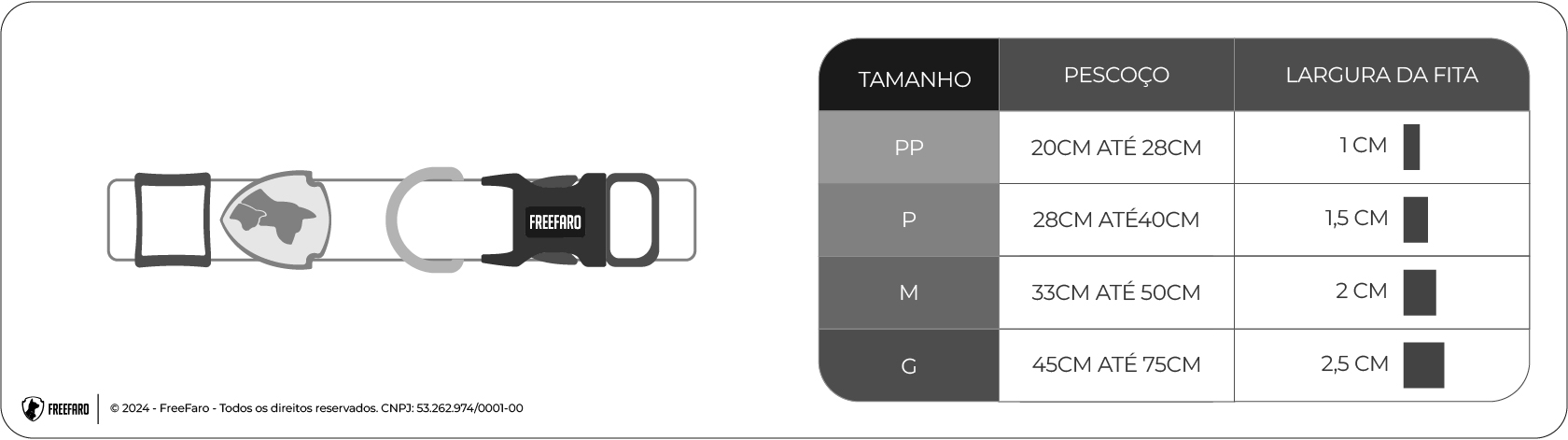 A Coleira Scooby-Doo™ para Cães foi projetada para ter conforto. Ela é ajustável e se encaixa perfeitamente ao pescoço do seu pet, trazendo segurança no momento do passeio.